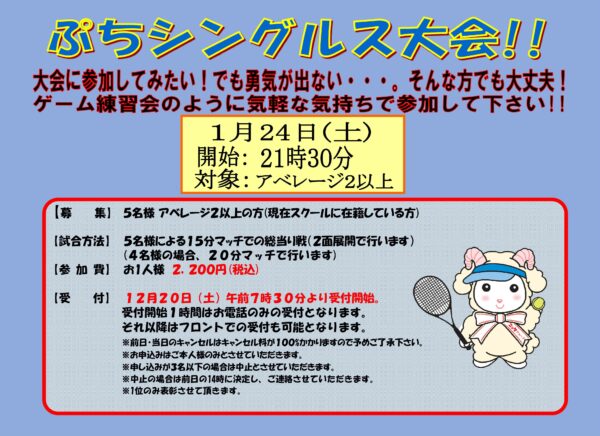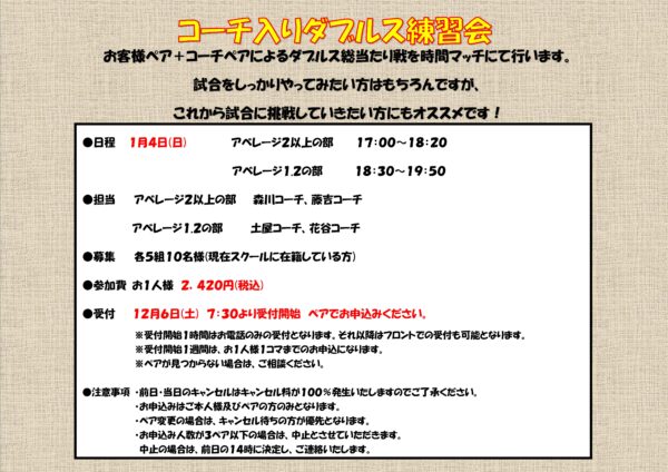 第100期 1/17(土)女性限定ぷちダブルス大会!