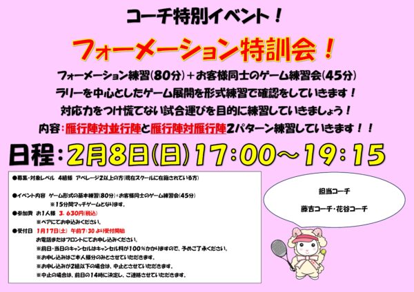 第100期 2/8(日)フォーメーション特訓会!
