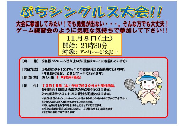 第99期 11/2(日)A1限定楽楽ダブルス練習会※プライベートレッスンあり!