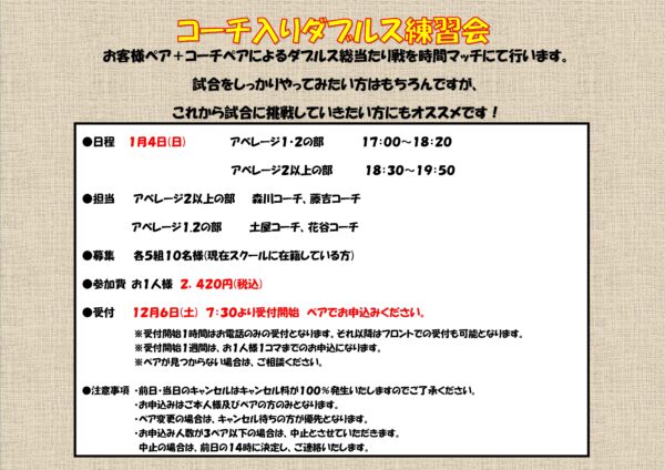 第99期12/28(日) NIKKE杯ダブルス大会 ※受付日修正