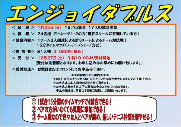 第100期 1/18(土)コーチ入り熱血団体戦!!