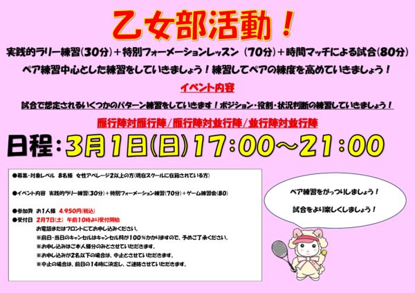 第100期 3/1(日)乙女部活動