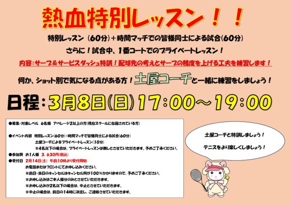 第100期 3/1(日)乙女部活動 ※ペアの申し込みになります。