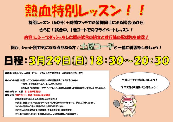第101期 3/29(日)熱血特別レッスン!