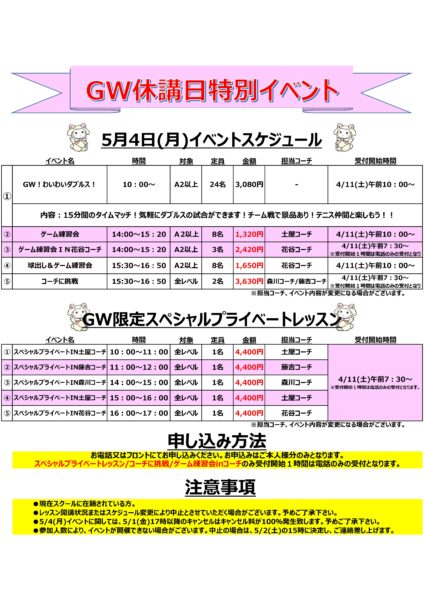 第101期 5/4(月)GW!休講日特別イベント!