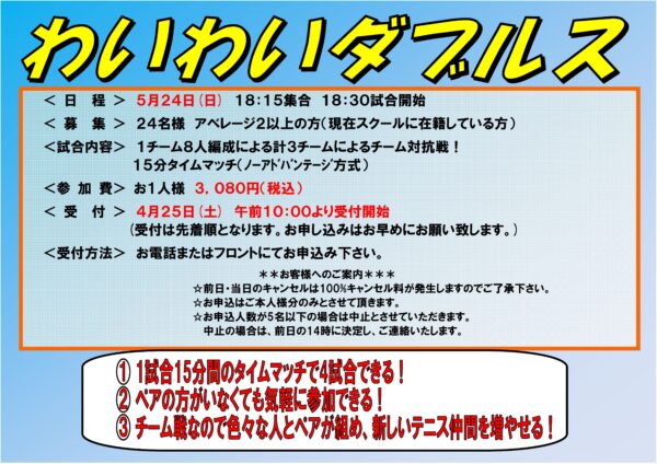 第101期 5/24(日)わいわいダブルス!