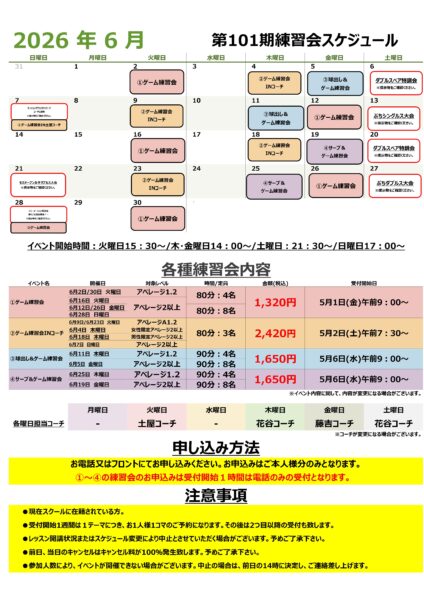 第101期 6月練習会イベントスケジュール