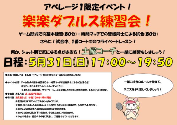第101期 5/31(日)楽楽ダブルス練習会!